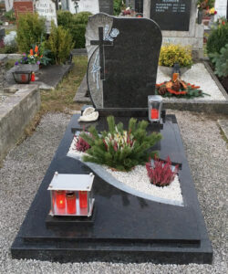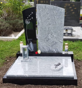 Beispiele unserer handwerklichen Arbeit – von klassisch schlichten bis modern gestalteten Einzelgrabsteinen aus verschiedensten Materialien.