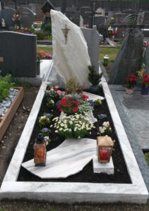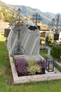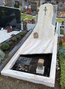 - E14 Grabanlage aus Sölker Marmor mit Eisenkreuz